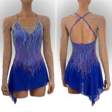 Abito da pattinaggio artistico Per donna Ragazze Pattinaggio sul ghiaccio Vestito Blu Orlo asimmetrico Rete Alta elasticità Allenamento Competizione Vestiti da pattinaggio sul ghiaccio Classico