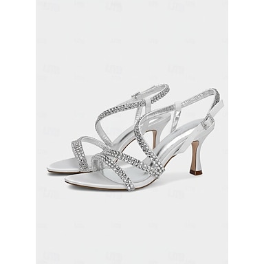 sandali da donna con cinturino posteriore argentato e dettagli in strass – tacchi a gattino aperti e scintillanti per cocktail serali e ricevimenti nuziali