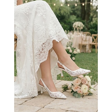 Per donna Matrimonio in giardino Matrimonio Tacco grosso Stiletto Punta a Punta Elegante Pizzo Mocassino Bianco