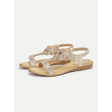 sandali da donna con strass dorati, eleganti scarpe estive basse per la spiaggia, casual e per le vacanze
