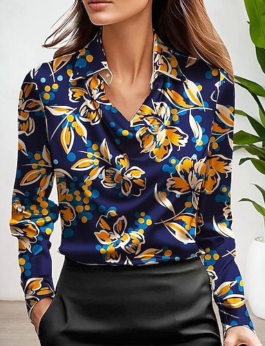 Per donna Camicia Arricciato Drappeggiato Floreale Grafico Elegante Casual Manica Lunga Scollo a Cascata Top Regolari Quotidiano Lavoro Abbigliamento da sera Blu Estate Autunno