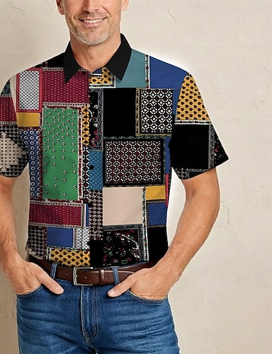 Per uomo Grafico Polo Polo con zip Manica Corta Magliette polo Colletto Casual Vacanza Abbigliamento da sera Abbigliamento Quotidiano Cerniera Stampa 3D Estate Primavera Bianco e nero