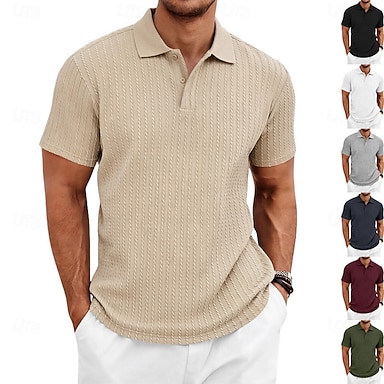 Per uomo Polo a maglia intrecciata Testurizzato Affari Vacanza Bavero Manica Corta Moda Moderno Semplice Bottoni Traspirante Estate Primavera Nero Bianco Vino Blu marino Verde Cachi Polo a maglia