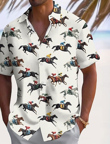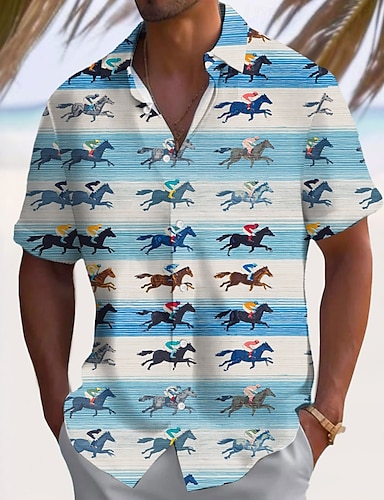 Derby del Kentucky Per uomo A righe Corsa di cavalli Camicia Camicia casual Camicia con Bottoni Manica Corta Moda Casual Vacanza Ferie Abbigliamento casual alla moda Estate Primavera Collo ripiegato