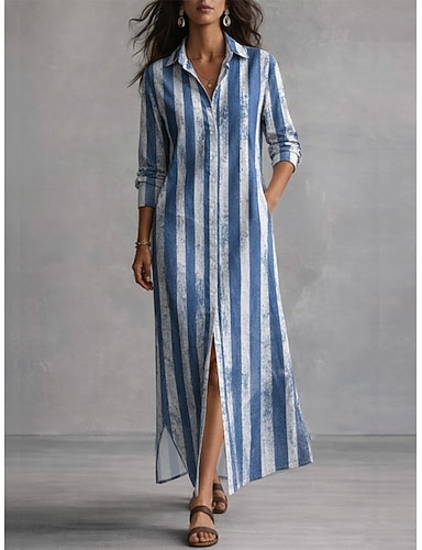 Per donna Abito maxi Abito blazer Tubino Vacanza Casual Quotidiano Ufficio Feste Vestibilità regolare A righe Manica Lunga Bavero Blu Estate Primavera