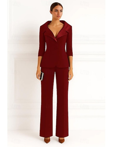 Per donna Abiti da 2 pezzi Formale Ospite di nozze Crepe Elasticizzato Elegante Vintage Minimalista Manica Lunga Lunghezza al pavimento Risvolto a punta Monopetto