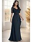 Linea ad A Strascico a Terra Abito da invitata a nozze Abito Formale Abito da sera Abito da cerimonia per signora Manica Corta Scollo Illusione Elegante Taglie Forti Feste Ospite di nozze Occasione