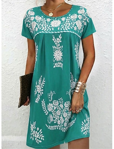 Per donna Abito al ginocchio Vestito Estivo Vestito Casual Elegante Moda Moderno All'aperto Vacanza Uscire Vestibilità regolare Floreale Manica Corta Girocollo Rosso Blu Reale Viola Verde Estate