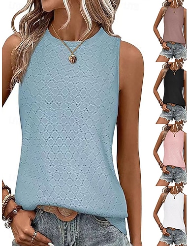 Per donna Maglietta Canotta Patchwork Traforato Tinta unica Moda Elegante Classico Senza Maniche Girocollo Top lunghi Quotidiano Uscire Weekend Nero Bianco Rosa Vino Rosa polverosa Estate Primavera