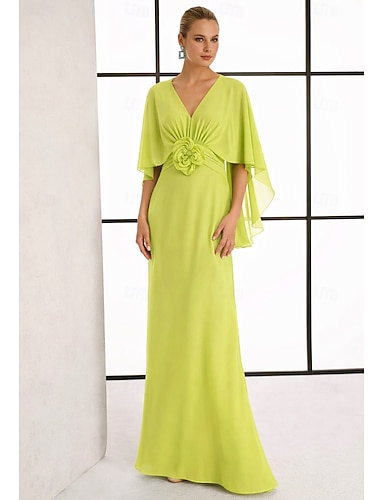 Linea ad A Lunghezza al pavimento Abito da invitata a nozze Vestito in Chiffon Abito da sera Abito da cerimonia per signora Manica 3/4 Scollo a V Elegante Formale Ospite di nozze Semi-Formale Chiffon