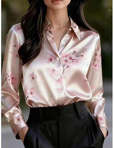 Per donna Camicia Bottoni Stampato Floreale Grafico Elegante Essenziale Moderno Manica Lunga Colletto a Camicia Top Regolari Quotidiano Lavoro Rosa Estate Primavera