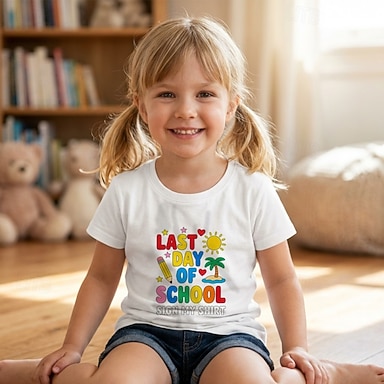 100% Cotone Bambini Ragazze Bianco Grafico Albero di Cocco Lettera Maglietta Girocollo Manica Corta Vacanza Sport & Outdoor Abbigliamento Quotidiano Vacanza Moda Casual Stampa Estate