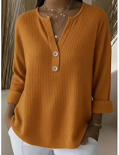 Per donna Camicia Camicia a nido d'ape Blusa Bottoni Semplice Elegante Classico Moderno Manica Lunga Scollo a V Top Regolari Quotidiano Ferie Uscire Giallo Rosso Viola chiaro Verde Azzurro Estate