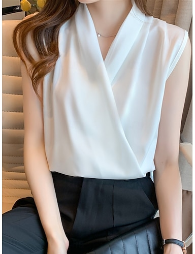 Per donna Camicia Blusa Top in chiffon Arricciato Semplice Attivo Elegante Senza Maniche Scollo a V Top Regolari Quotidiano Abbigliamento casual alla moda Ferie Rosa cipria Nero Bianco Champagne Verde