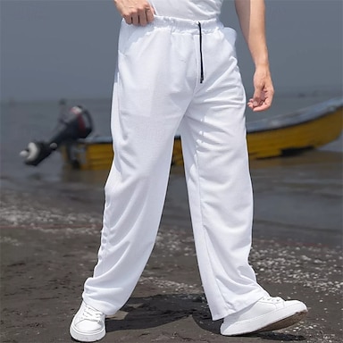 Per uomo Pantaloni di Lino Pantaloni Pantaloni Estivi Pantaloni Larghi Pantaloni da Spiaggia Coulisse Elastico in vita Gamba Dritta Semplice Comodità Traspirante Lunghezza intera All'aperto