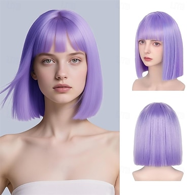Parrucca sintetica corta e dritta da 12 pollici per cosplay da donna, parrucche per feste di Halloween e cosplay