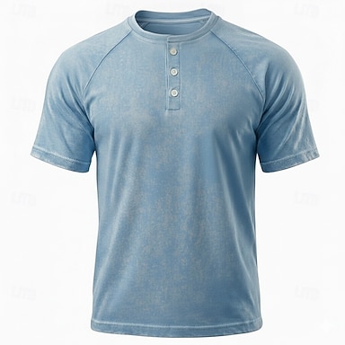 Per uomo Maglietta Top Henley Maglietta di cotone Camicia lavata Manica Corta Tinta unica Semplice Tinta unita Vintage Designer Angosciato Sbiadito Bottoni Henley Casuale Quotidiano All'aperto Estate