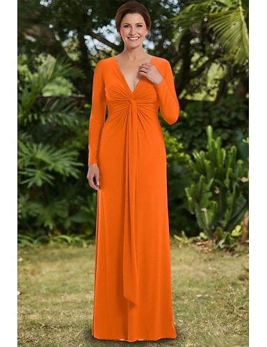 Tubino Colonna Lunghezza al pavimento Abito da invitata a nozze Abito Formale Abito da sera Abito da cerimonia per signora Manica Lunga Scollo a V Elegante Vintage Ospite di nozze Chiffon