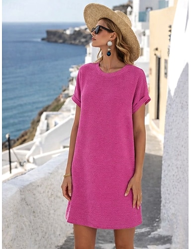 Per donna Mini Abito Vestito T-Shirt Abito Estivo Casual Quotidiano Vestibilità regolare Semplice Manica Corta Girocollo Fucsia Estate