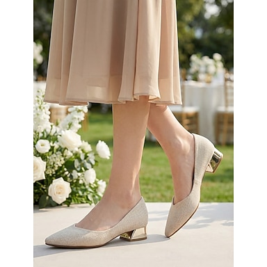 Décolleté da donna color champagne con tacco a blocco – eleganti scarpe da cerimonia a punta con tacco metallico per la madre della sposa e per matrimoni in giardino. &eventi formali