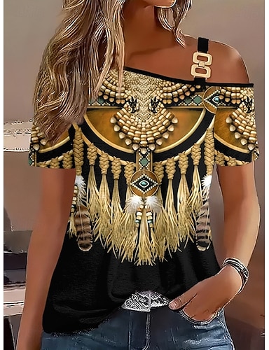 Per donna Maglietta Stampato Asimmetrico Floreale Grafico Piante Elegante Classico Casual Manica Corta Senza Spalle Collo asimmetrico Top Regolari Quotidiano Uscire Weekend Marrone Rosa Estate
