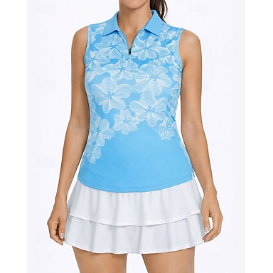Per donna Floreale Maglia atletica Polo da tennis Canotte Senza Maniche Con zip Elastico Traspirante Pallavolo Tennis Badminton Colletto Polo Tank Back Top Blu Abbigliamento da tennis
