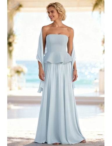 Due Pezzi Linea ad A Lunghezza al pavimento Abito da invitata a nozze Abito da cerimonia per signora Senza Maniche Senza Spalline Elegante Formale Ricevimento di matrimonio Con Stola con Volant