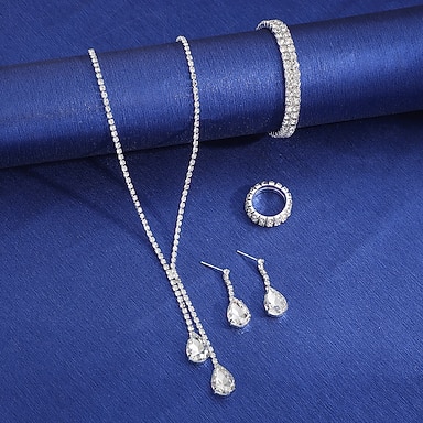 Set di Gioielli 4 Cromo 1 Collana 1 Bracciale 1 Anello Orecchini Per donna Lusso Parure di gioielli Per Feste