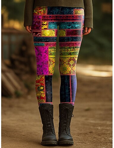 Per donna Leggings Vacanza Vintage Moda Lunghezza alla caviglia Vita Alta Floreale Grafico Geometrico Stampa Calore Termico Morbido Traspirante Elasticizzato Quotidiano All'aperto Vacanza Blu Rosa