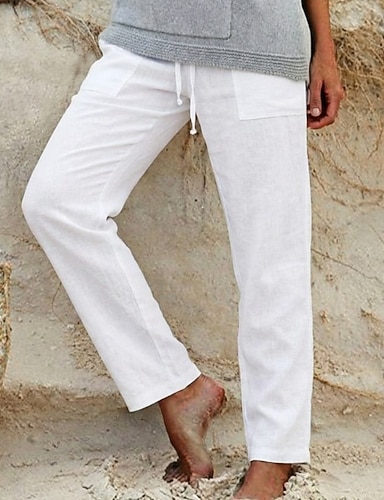 Per donna Taglia EU / US Finto cotone e lino Chinos Pantaloni Estivi Pantaloni Vintage Moda Stile Classico Lunghezza intera Misura del girovita medio Tinta unica Tasca Elegante Comodo Traspirabilit