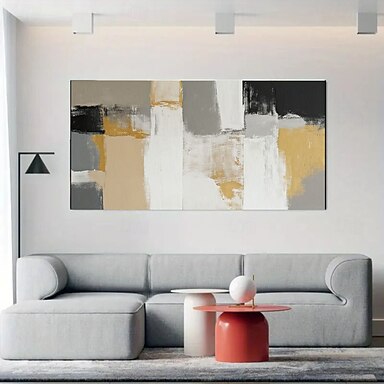 Pittura A Olio Fatta A Mano Dipinta A Mano Arte Della Parete Moderna Giallo Grigio Nero Linea Astratta Decorazione Della Casa Arredamento Cornice Tesa Pronta Da Appendere