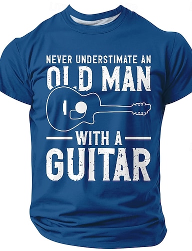 Non sottovalutare mai un vecchio con una chitarra, chitarra acustica, t-shirt vintage da musicista, grafica, maniche corte, girocollo, regalo per la festa del papà, abbigliamento casual firmato,