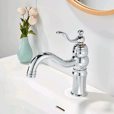 Lavandino rubinetto del bagno - Cascata Galvanizzato Installazione centrale Una manopola Un foroBath Taps