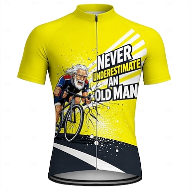 Da uomo Maglia da Ciclismo Maglia da downhill Non sottovalutare mai un vecchio con una bicicletta Manica Corta Bicicletta Maglia Maglietta con 3 tasche posteriori Resistente ai Raggi UV Asciugatura