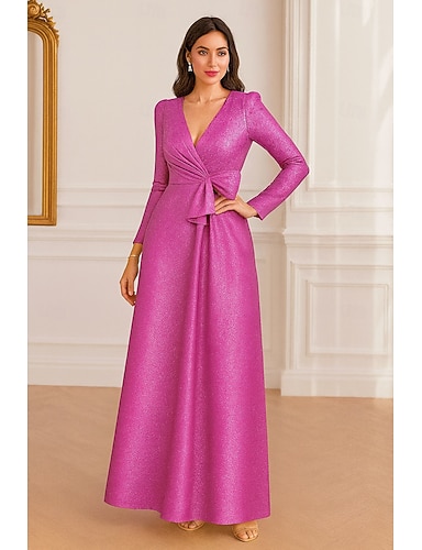 Linea ad A Lunghezza al pavimento Abito da Sera Elegante Scintillante Brillanti Manica Lunga Scollo a V Matrimonio Formale Tessuto Lurex con Fiocco/Fiocchi