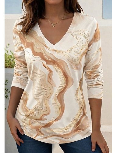 Per donna Maglietta Stampato Floreale Grafico Sfumatura Elegante Vintage Classico Manica Lunga Girocollo Scollo a V Top Regolari Quotidiano Blu Albicocca Estate Primavera Autunno