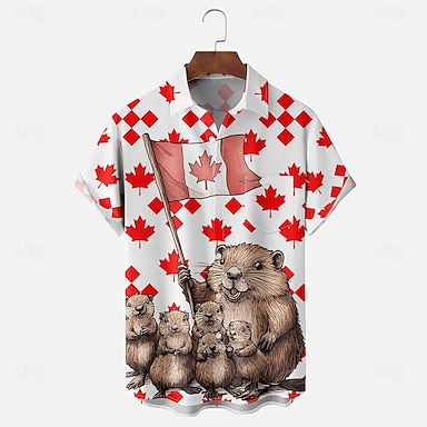 Festa del Canada Per uomo Bandiera Foglia d'acero Castoro Camicia Camicia Estiva Camicia con Bottoni Manica Corta Moda Casual Ferie Estate Primavera Collo ripiegato Stampa 3D camicie con colletto Una