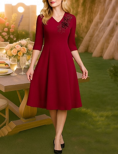 Linea ad A Lunghezza al ginocchio Vestito da Festa Abito da Cocktail Abito da invitata a nozze Abito da cerimonia per signora Manica 3/4 Girocollo Elegante Vintage Lussuoso Ferie Cocktail party