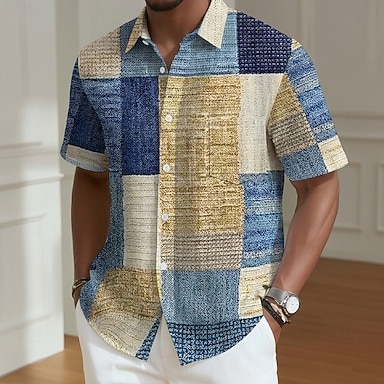 Per uomo Geometrico Blocco di colori Patchwork Camicia Camicia Estiva Camicia con Bottoni Manica Corta Moda Casual Quotidiano All'aperto Ferie Estate Primavera Collo ripiegato Stampa 3D Una tasca