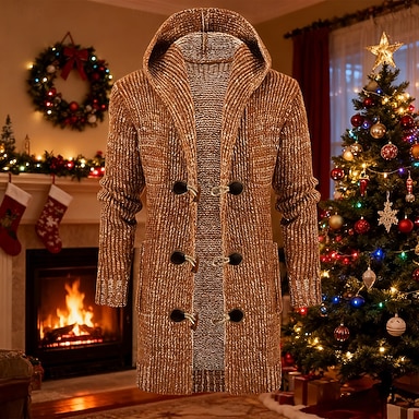 Per uomo Cardigan Giacca Maglione Maglia Lavorato a maglia Tinta unica Con Cappuccio Elegante Casuale Abbigliamento Autunno Inverno Vino Cachi M L XL
