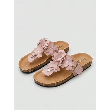 Sandali infradito da donna rosa con stampa floreale: ciabatte basse con plantare morbido e decorazione floreale 3D, scarpe estive leggere e facili da indossare, perfette per le vacanze al mare e le
