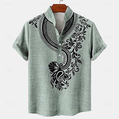 Per uomo Camicia Camicia da Spiaggia Camicia con Bottoni Vichingo All'aperto Vacanza Nero Bianco Rosa Arancione Manica Lunga Colletto Mao Primavera & Autunno Abbigliamento Stampato