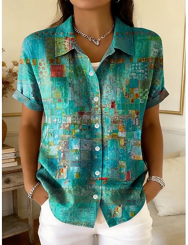 Per donna Camicia Bottoni Stampato Grafico Geometrico Paisley Quotidiano Elegante Casual Manica Corta Colletto a Camicia Top Regolari Casuale Quotidiano Verde Beige Estate Primavera