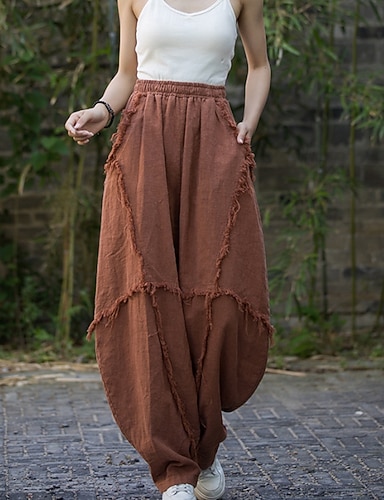 Per donna Pantaloni in cotone e lino Chinos Pantaloni Estivi Culotte Vacanza Streetwear Essenziale Lunghezza intera Vita media Semplice Tasca Fascia Elastica Inelastico Quotidiano All'aperto