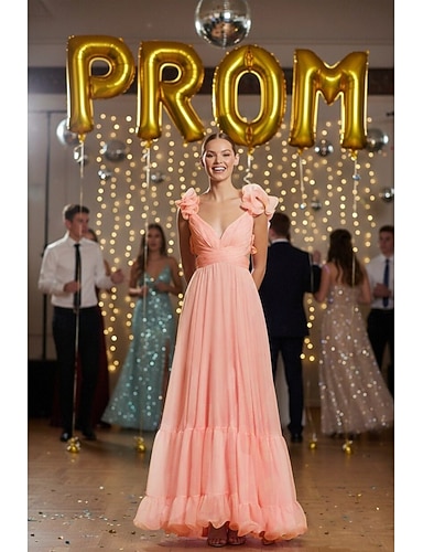 Linea ad A Lunghezza al pavimento Abito da invitata a nozze Abito Formale Abito da sera Abito da cerimonia per signora Senza Maniche Scollo profondo Elegante Formale Laurea Chiffon con Volant