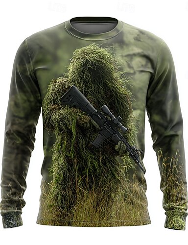 Per uomo Mimetico Maglietta Manica Lunga maglietta Stampa 3D Girocollo Camicia Moda All'aperto Streetwear Sport all'Aperto Caccia verde 1# Verde 2# Estate Primavera Abbigliamento S M L XL XXL XXXL