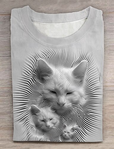 Per uomo Gatto Maglietta Manica Corta maglietta Stampa 3D Girocollo Camicia Moda Athleisure Streetwear Sport all'Aperto Grigio chiaro Estate Primavera Abbigliamento S M L XL XXL XXXL