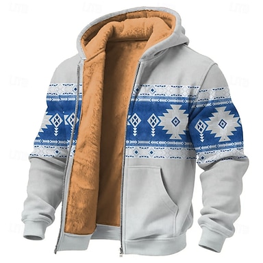 Per uomo Tribale Pile Felpa con Cappuccio Felpa Moda Quotidiano Semplice Etnico Manica Lunga Girocollo All'aperto Arrampicata Giallo Rosso Blu Verde Con zip Autunno Inverno progettista S M L XL 2XL