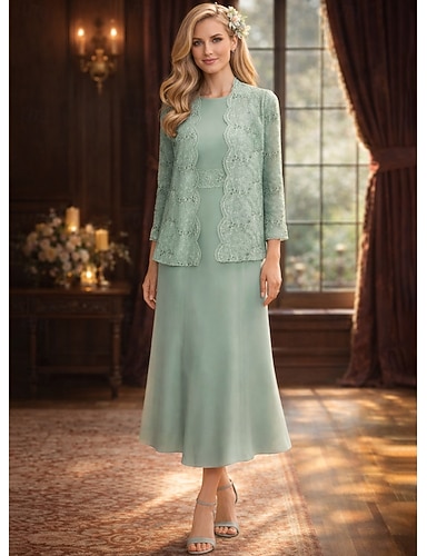 Due Pezzi Linea ad A Lunghezza alla caviglia Lunghezza Tè Abito da invitata a nozze Abito da cerimonia per signora Senza Maniche Manica 3/4 Scollo a Barca Elegante Semplice Casual Formale Ospite di
