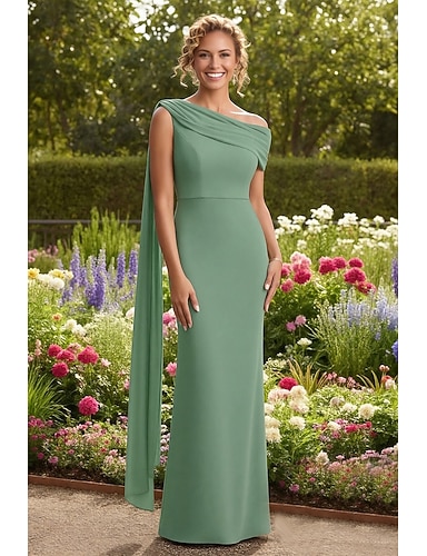 Tubino Colonna Lunghezza al pavimento Abito da invitata a nozze Abito Formale Abito da sera Abito da cerimonia per signora Senza Maniche Monospalla Elegante Formale Chiffon con Tinta unita